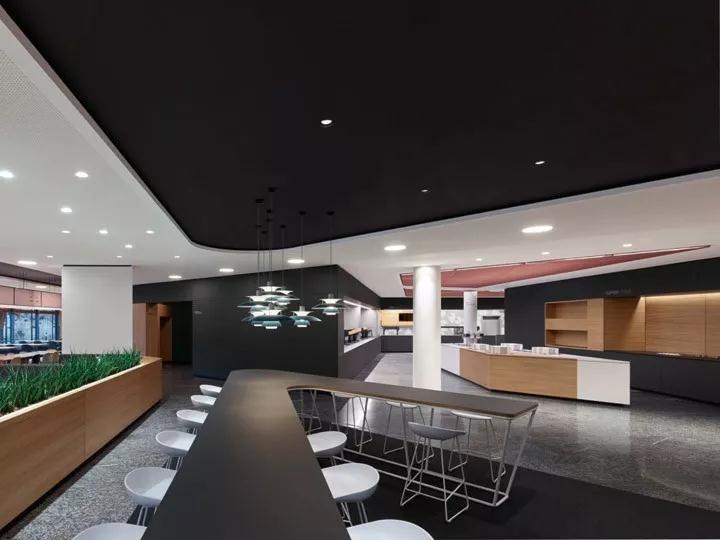 設計以開放的格局營造寬敞的空間體量,清新靚麗的色彩和豐富的材質肌理令整個空間有著大學校園般的青春氛圍??烧{節高度的升降桌、充滿活力的綠植墻、提供健康飲食和零食的自助餐吧,深圳裝修公司設計體現以人為本的設計哲學。