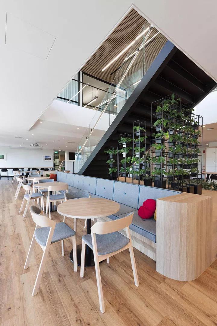 這道樓梯不僅促進和鼓勵員工健康的行為方式和相互協作,在其下方還構建了一處垂直花園,為空間增添了自然元素。