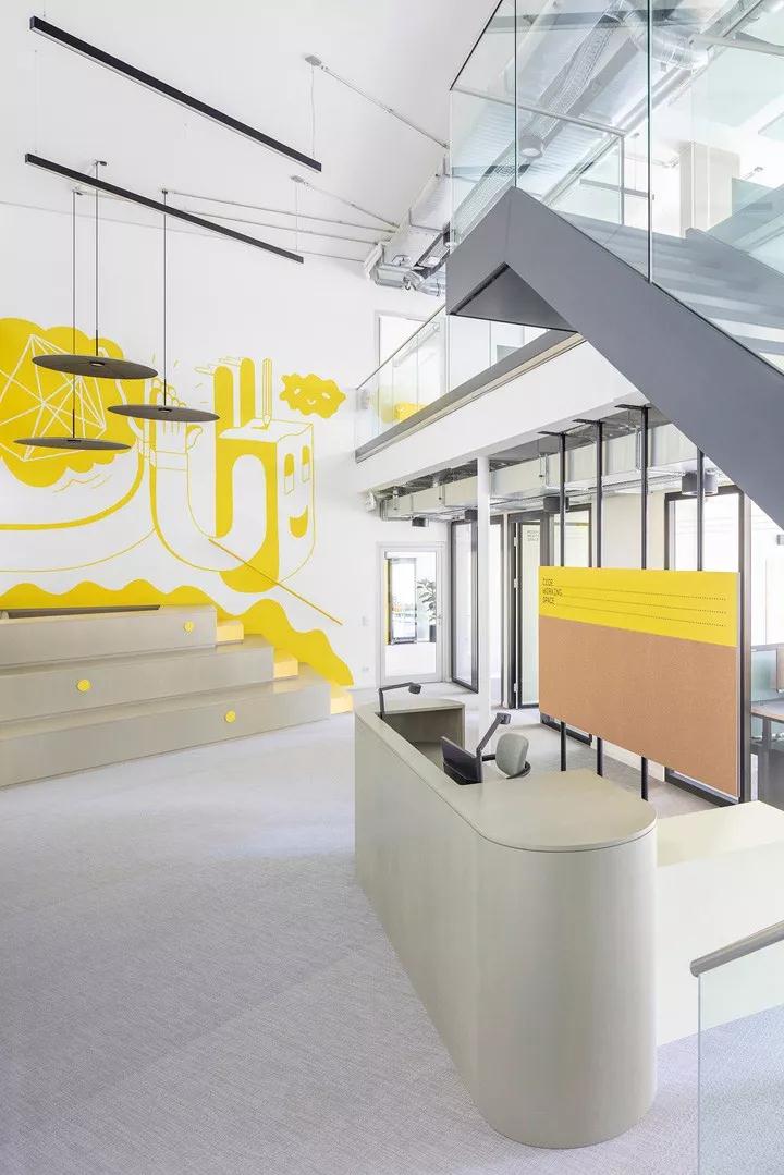 上下兩個(gè)樓層共450平方米的面積,還規(guī)劃了一個(gè)公共廚房和幾間小會(huì)議室;一間帶有小廚房的大型活動(dòng)空間讓這里具備更多的功能性。