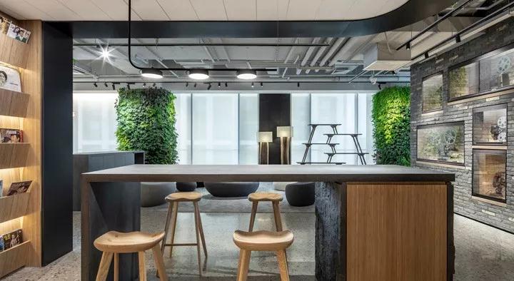 深圳清晨的第一縷陽光,夜晚的華燈初上,初夏的綠意.......一一被深圳裝飾公司邀進空間,這里演繹著不同的故事也滋養(yǎng)和激發(fā)著創(chuàng)作者們的想象力, 業(yè)主對于自然環(huán)境以及高科技也不失偏愛。微暗的前廳,星光點點,激光投影在特效玻璃屏幕上變換著內(nèi)容,每一幀畫面攜竹影共舞,給予著空間不同的表情,投影關閉后,柔和的光線傾聽著風與竹葉低語,卻透露了屏幕后的別有洞天,深圳裝飾公司設計師們在這里借著一角竹景與室外窗景呼應,設計了一個自然、放松的小休閑區(qū),簡斯可繼,繁則難久,員工辦公區(qū)返璞歸真,追求人于環(huán)境中可得悠然之氣,時光的變化把物質(zhì)環(huán)境里的基本元素變成材料和心靈的語言系統(tǒng),竹、石自然質(zhì)感材料的運用與墻、柱盎然的綠植帶來空間的自然與簡靜,而恰是這份沒有多余紛雜的氣氛,將思想和工作心境帶回最本真的狀態(tài),經(jīng)幾處轉角,便藏著幾處悠然,于不知處半隱著時光與人的故事。