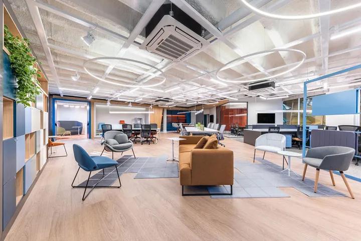 此案的創新指南是打破傳統的固有辦公設計思想,并探索獨特,引人注目的刺激空間。聰明的色彩匹配是一個很好的解決方案:中性的建筑空間,利用裝修公司的色彩來形成色彩繽紛的家具,創造出奇妙而非凡的空間體驗