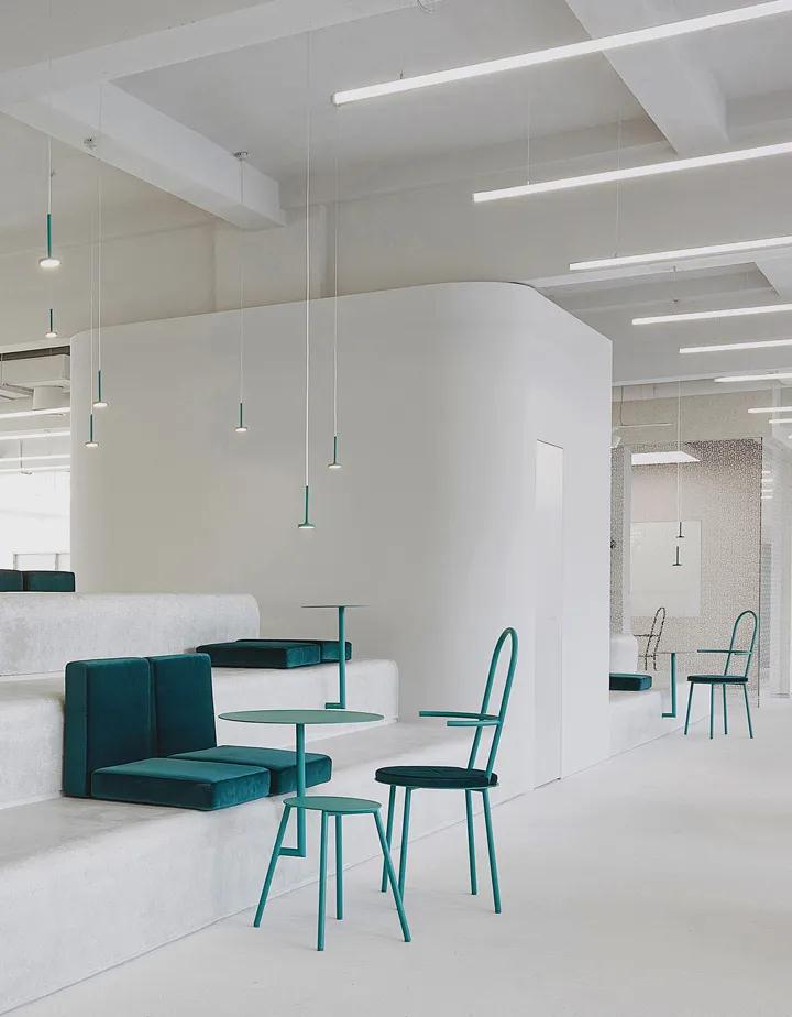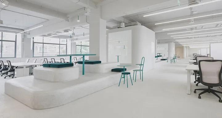 在傳遞青春,活潑,樸素,鮮明和創意的形象風格。它的辦公環境設計還遵循“簡單的空間和簡單的規則”,以創建簡單干凈的內部空間。具有不同高度和材料形狀的各種空間塊可引導人們進入開放空間,例如廚房,會議室,展示墻或中央封閉的私密空間。整體環境以柔和明亮的色彩呈現概念以及積極樂觀的時尚態度。
