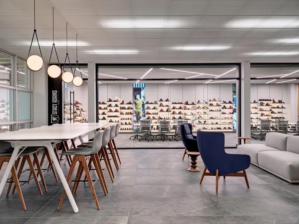 全新設計的品牌陳列室位于一樓的中心,接待批發和零售客戶。它目前以虛擬方式顯示。每個房間都代表著一個品牌的體驗品質;但同時,所有的房間都是由相似的材料連接起來的。設計團隊規劃了一個中央接待空間,為所有品牌房間服務,還有一個安靜的工作或午餐空間,直到他們可以與客戶面對面交流。